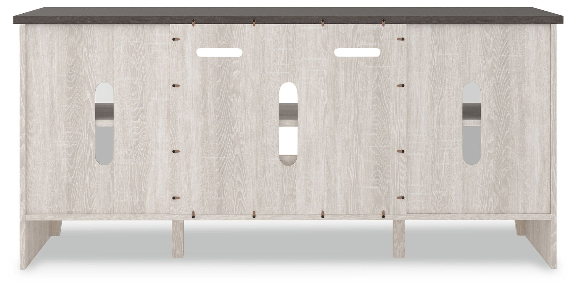 With its minimalist charm, this TV stand is right in tune with your relaxed approach to high style. Beautifully made to accommodate your media equipment, it’s well equipped with a flexible, open-concept design and cutouts for wire management that enhance the clean-lined aesthetic. The look is ideal for modern farmhouse and contemporary settings.